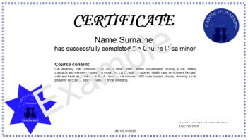 When you have passed the course in question, you will be listed on a specific page (Graduates) of Campus Felinarium and get a certificate plus a star-button for the course in question to place on your website.